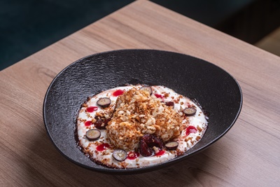 Rántott camambert / Párolt rizs / Áfonyalekvár
